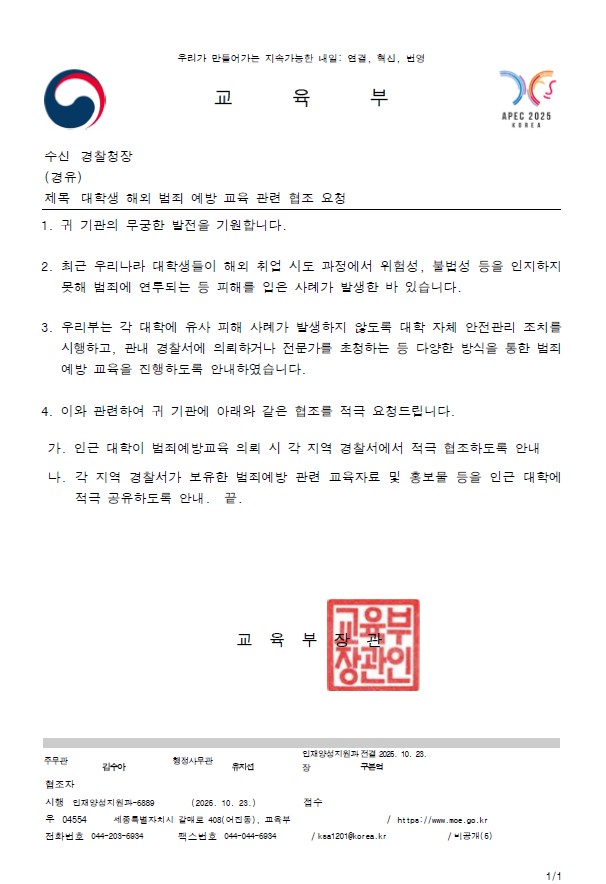 1. 관련: 교육부 인재양성지원과-6920(2025.10.23.)