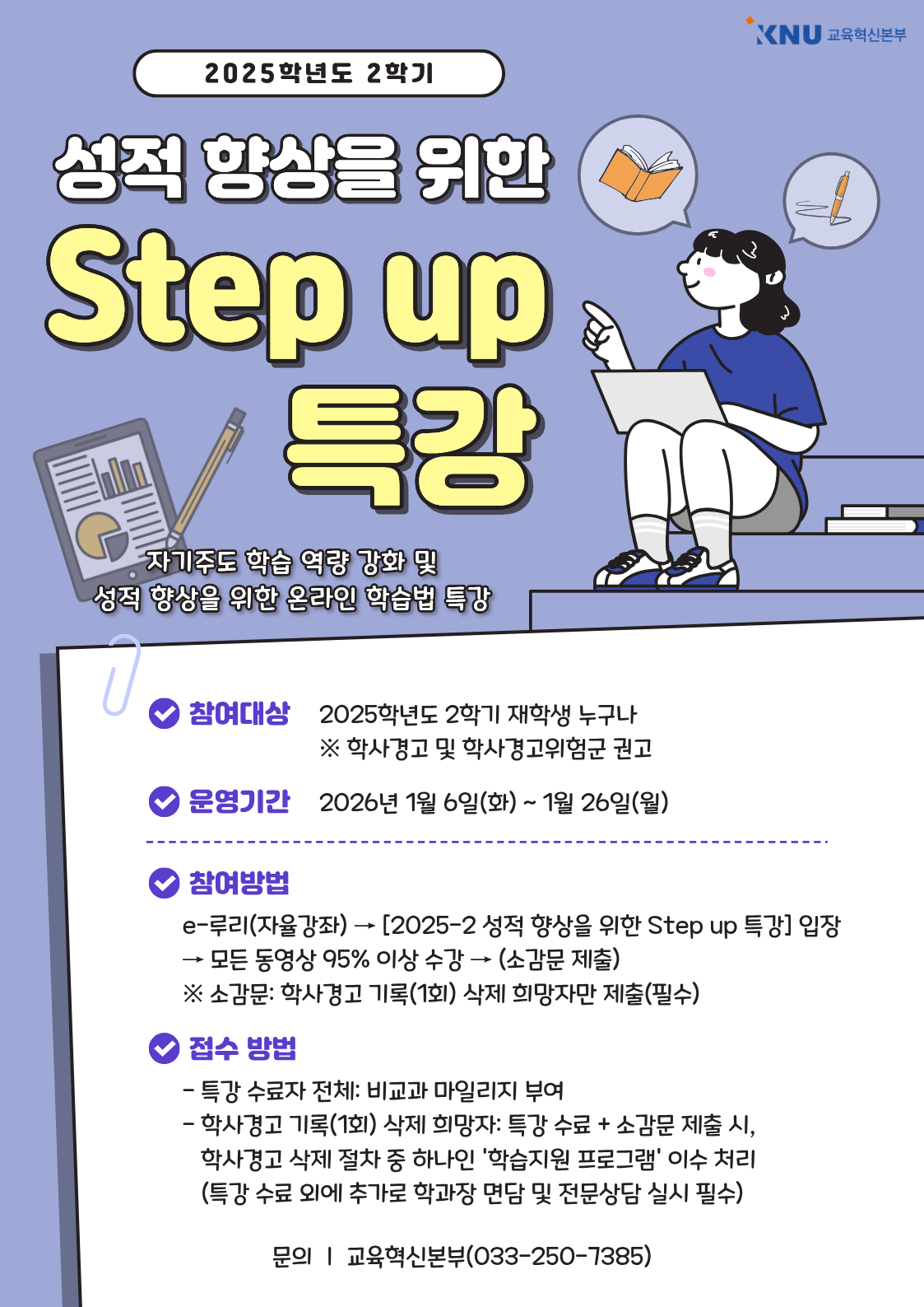 2025학년도 2학기 성적 향상을 위한 Step up 특강 시행 안내